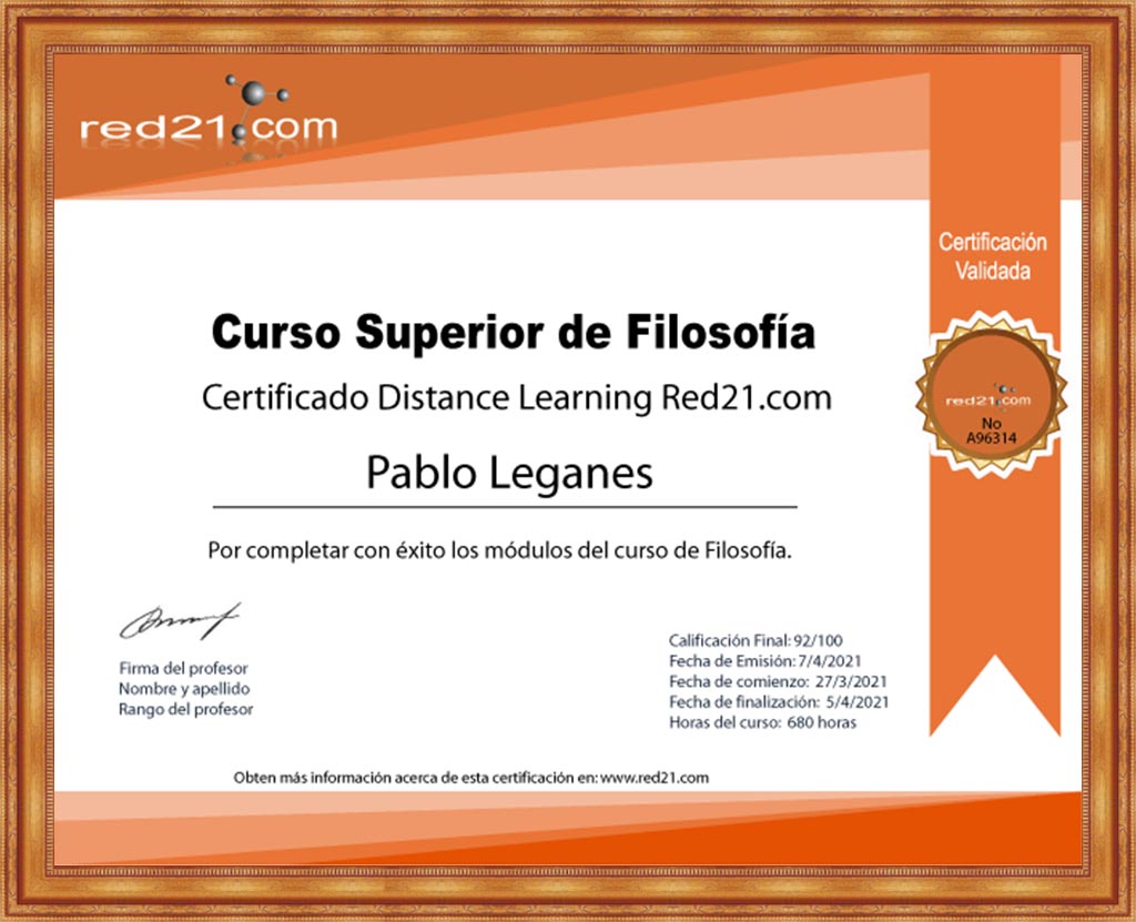 Al presentar, y aprobar la prueba final, recibirás un certificado de Aprobación del curso emitido por la Distance Learning Red21.com Corporate System reconocido por las principales empresas bajo la modalidad de enseñanza privada. A continuación un ejemplo de un certificado.